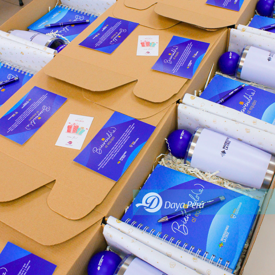 Este regalo de bienvenida combina practicidad y estilo: una libreta para inspirar nuevos proyectos y un tomatodo ideal para acompañar la rutina diaria. Pensado para generar conexión desde el primer día.