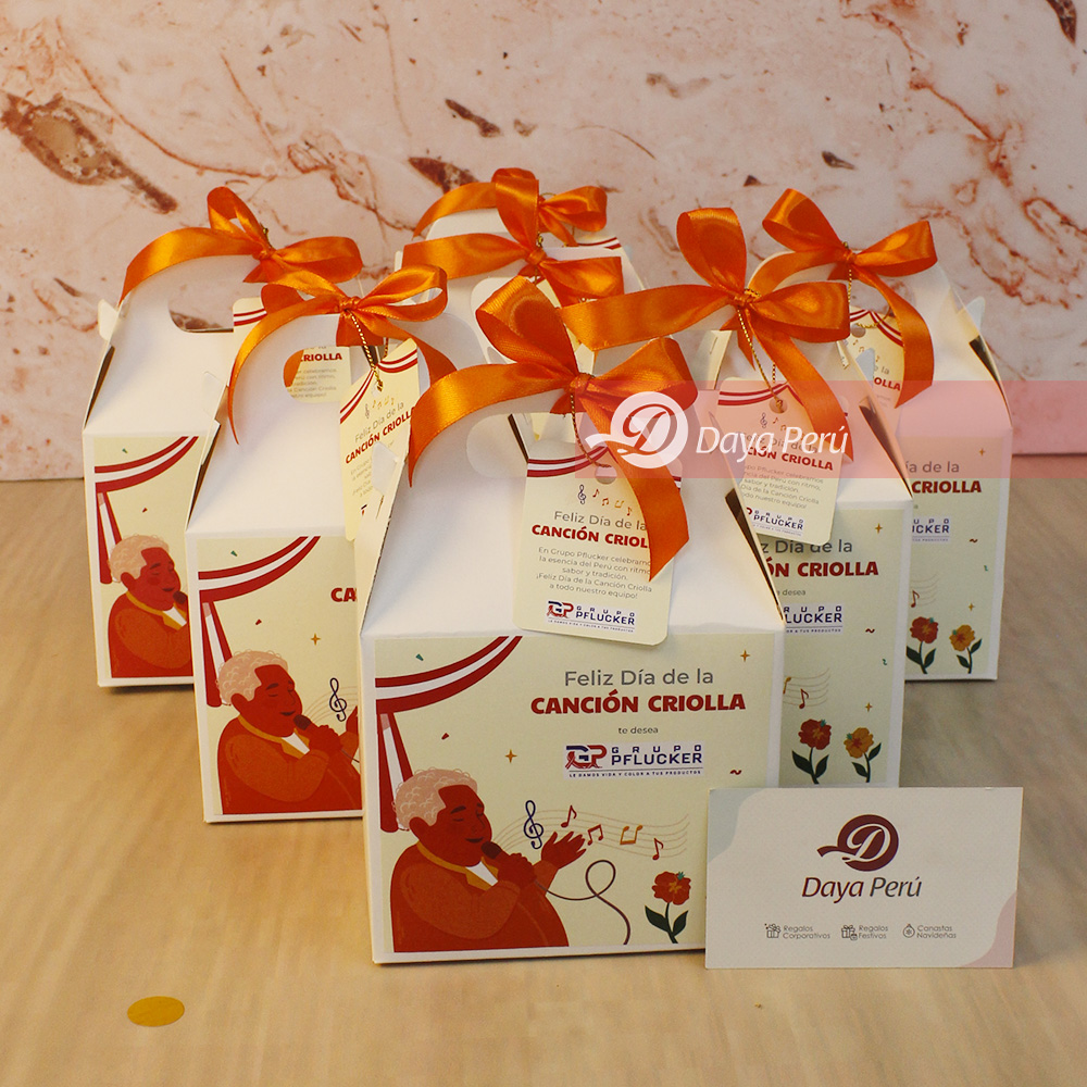 Presentación: Caja blanca tipo lonchera brandeada y decorada con lazo de cinta satinada + tag personalizado.
